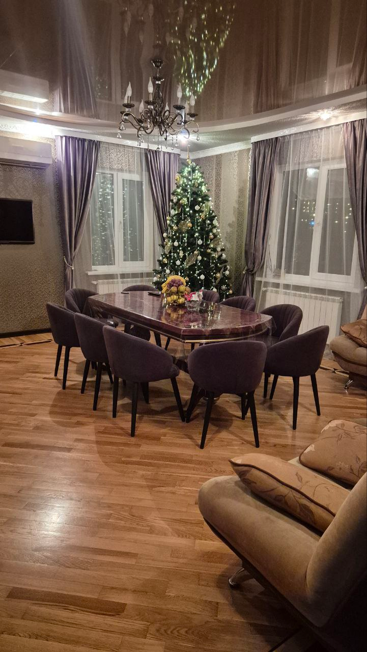 5 изолированных спален с двуспальными кроватями. Кухня со всем необходимым: кастрюли, сковороды, посуда, приправы, чай, кофе и необходимой техникой для комфортного проживания: электрочайник, микроволновая печь, газовая плита, холодильник. Стол на 10 посадочных мест в гостиной, с зоной ТВ. Еще одна гостиная на 2 этаже с зоной ТВ, 3 больших раскладных дивана и 4 кресла. В доме есть фен, музыкальная колонка, работают кондиционеры. Парковка под навесом на 4 авто, во дворе можно разместить ещё до 5 авто, входит в стоимость. До магазинов "Магнит" и "Магнит Косметик" - 250м, "Пятёрочка", аптека - 500м. До термальных источников Псыгупс примерно 1км (10 минут пешком). До других термальных бассейнов посёлка 10 минут на авто. 5 спален, вместимость до 12 человек, теплый бассейн, баня на дровах входит в стоимость. Подробности по телефону +79064386120